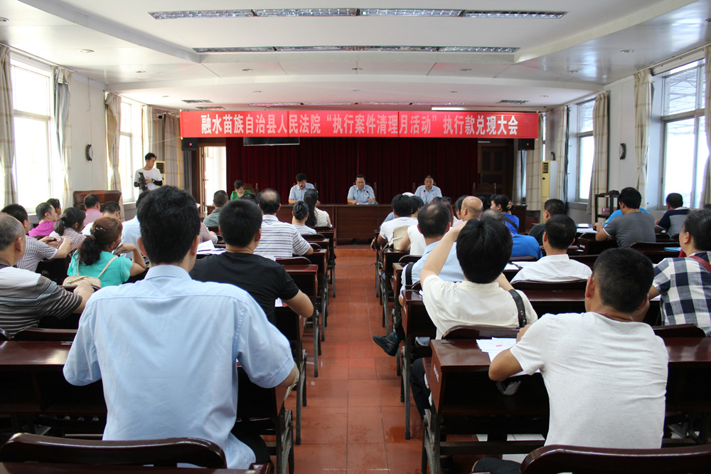 融水法院党组副书记、副院长莫东军在会上介绍,自5月6日起执行专项活动开展以来,截至5月30日,该院共执结案件98件,为当事人追回款项1402.4万元,将17人列入失信被执行人名单,依法拘留拒不履行法院判决、裁定被执行人7人,罚款26万元。在全县范围内形成了强大的执行威慑力,挤压了失信人的生存空间,切实维护了群众合法权益。