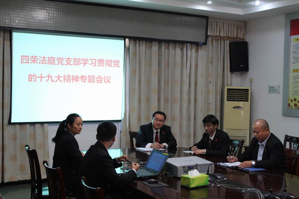 关院长指出,十九大的召开标志着我党开启了全面建设社会主义现代化国家的新征程,习近平总书记作的十九大报告,内容丰富、高屋建瓴,深刻阐述了新时代坚持和发展中国特色社会主义的一系列重大理论和实践问题,阐明了未来一个时期党和国家事业发展的大政方针,提出了一系列新的重要思想、重要观点、重大举措。关院长要求,全院干警要深入贯彻落实十九大精神,将其当做当前和未来时期最紧迫、最重要的工作常抓不懈,将十九大精神贯穿到审判执行工作的各个方面:一是深刻领会十九大精神,坚持党对法院工作绝对领导的政治方向;二是提高服务大局意识,自觉把法院工作置于全县工作大局中,更好的服务县域经济社会的的健康发展和谐稳定;三是不断提升司法能力、改进司法作风,坚持全面从严治党、打造过硬队伍,不断提升人民群众对法院工作的满意度,深入推进依法治国。